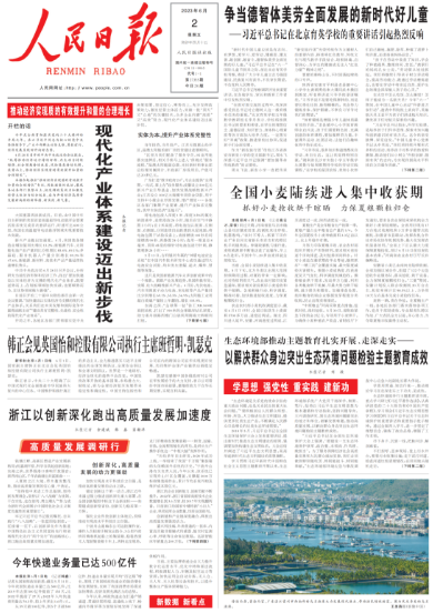 6月2日,《人民日報》在頭版“推動經濟實現質的有效提升和量的合理增長”專欄的開欄篇目《現代化產業體系建設邁出新步伐》中,聚焦中國船舶集團旗下外高橋造船通過國產首制大型郵輪工程補齊短板,產業鏈供應鏈韌性持續夯實,初步形成中國郵輪標準體系。