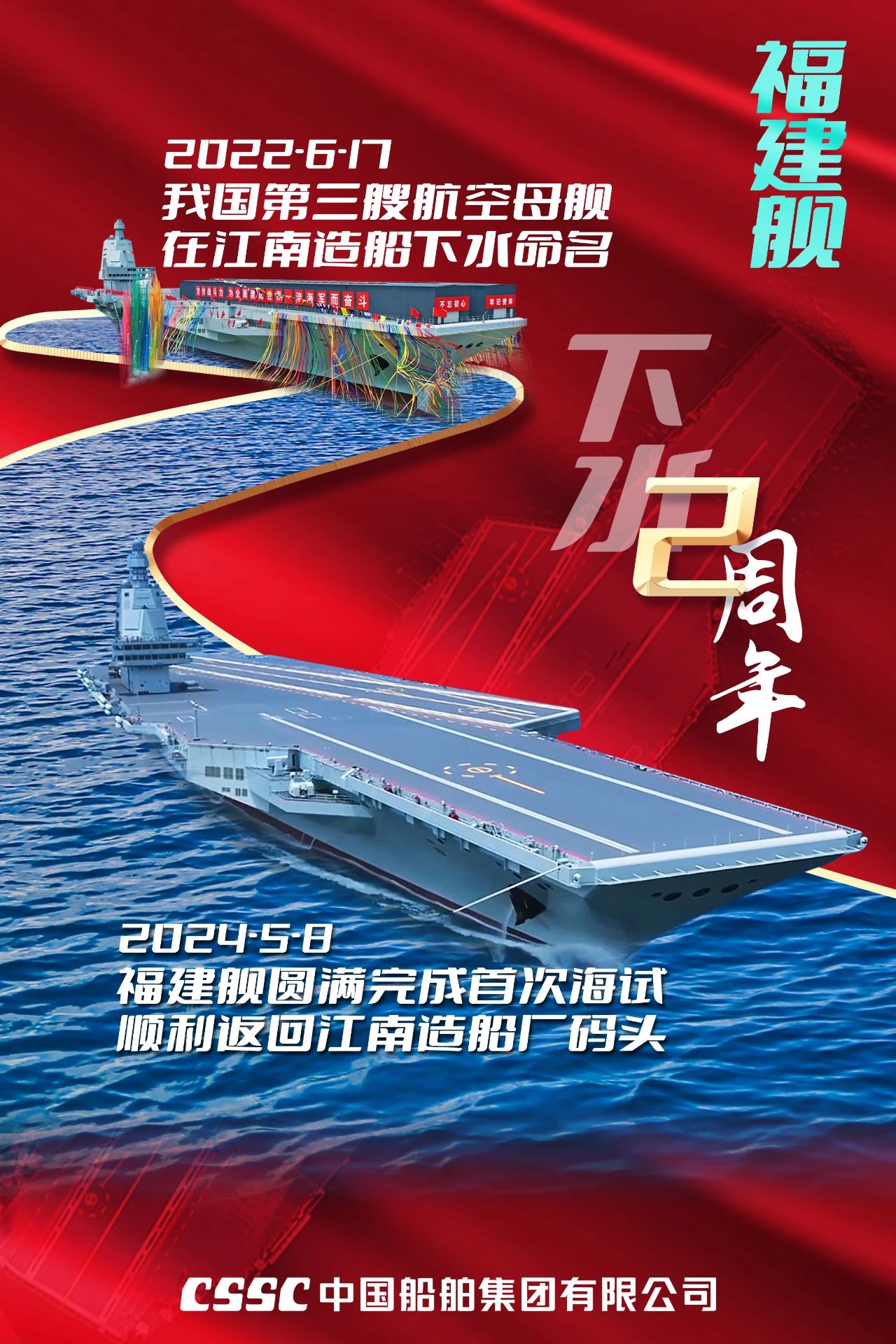 兩年前的今天,我國完全自主設(shè)計建造的首艘彈射型航空母艦——福建艦,在中國船舶集團有限公司江南造船廠下水。