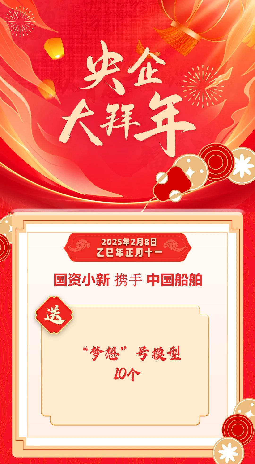 今天“國(guó)資小新”聯(lián)合中國(guó)船舶抽取10位幸運(yùn)粉絲,送上“夢(mèng)想”號(hào)純手工合金模型。