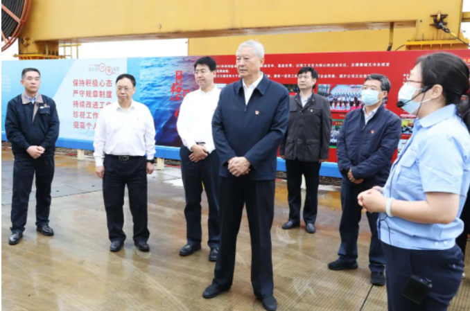調(diào)研期間,中央主題教育第42指導(dǎo)組組長王壽君、副組長房德權(quán),成員程建宏、項紫君、仇國歡一行深入黃埔文沖科研生產(chǎn)現(xiàn)場,登上在建重點船舶,詳細了解重點項目產(chǎn)品性能、技術(shù)優(yōu)勢,聽取了關(guān)于設(shè)計研發(fā)、創(chuàng)新改進、生產(chǎn)建造過程的介紹。指導(dǎo)組一行還走進黃埔文沖廠史館,了解黃埔文沖170多年的發(fā)展歷程。