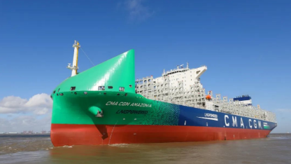 8月23日,中國船舶集團(tuán)旗下滬東中華聯(lián)合中船貿(mào)易為法國達(dá)飛海運(yùn)集團(tuán)建造的13000TEU雙燃料動(dòng)力集裝箱船系列6號(hào)船“CMA CGM AMAZONIA”號(hào)命名交付。至此,該系列船6艘船全部交付,順利收官。