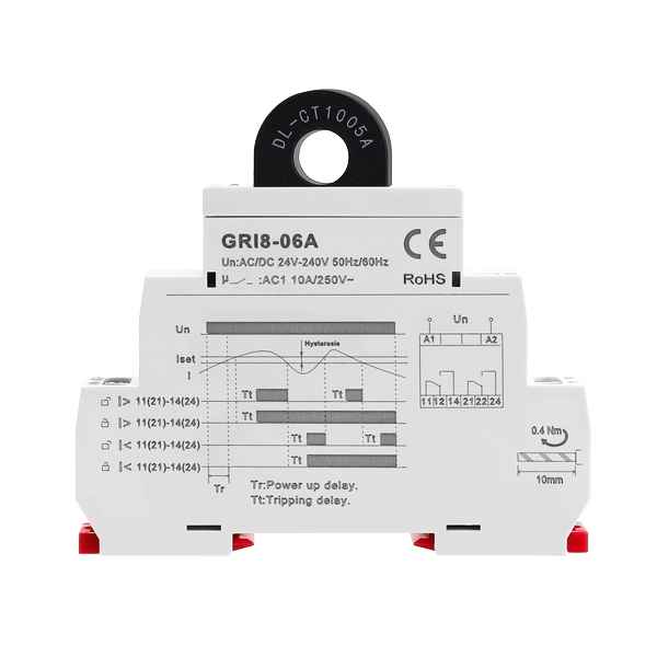 產(chǎn)品介紹:GRI8-06系列是一款多功能電流監(jiān)控繼電器,采用隔離電流互感器技術(shù),支持穿心式安裝與外部互感器擴展。其緊湊型設(shè)計(寬度僅18mm)適配標準35mm卡軌,提供過流/欠流雙模式監(jiān)測,工作電源覆蓋AC/DC 24~240V寬電壓范圍,適用于交直流混合場景。