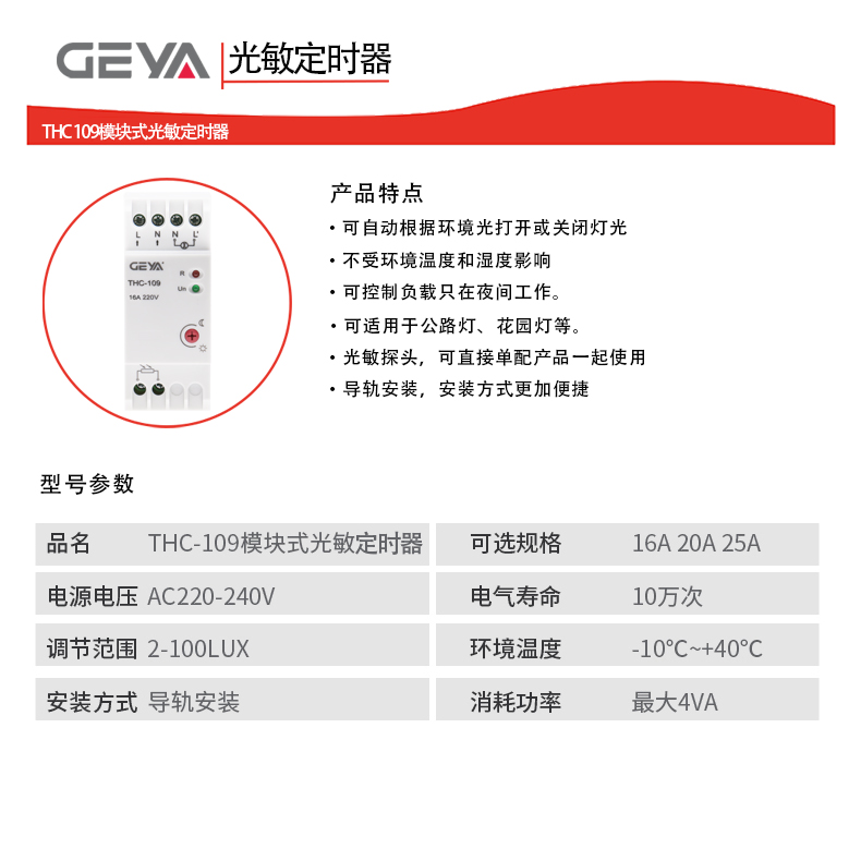 產(chǎn)品介紹:THC 109模塊式光敏感應(yīng)器不僅方便而且實(shí)用,它可以自動(dòng)根據(jù)環(huán)境光打開(kāi)或關(guān)閉燈光,也可以控制負(fù)載只在夜間工作。不受環(huán)境溫度和濕度影響,適用于公路燈、花園燈等。