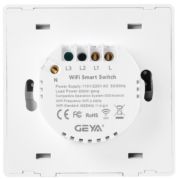 GSW6-S-P6系列歐標(biāo)單控觸摸型智能墻壁開關(guān)產(chǎn)品接線: |